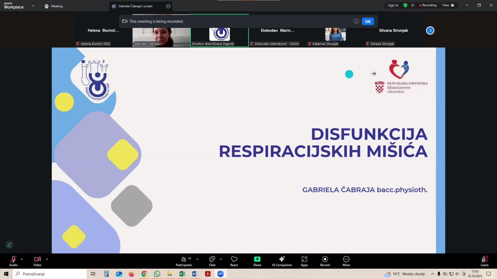 1. „Disfunkcija respiracijskih mišića“ – Gabriela Čabraja, fizioterapeutkinja
