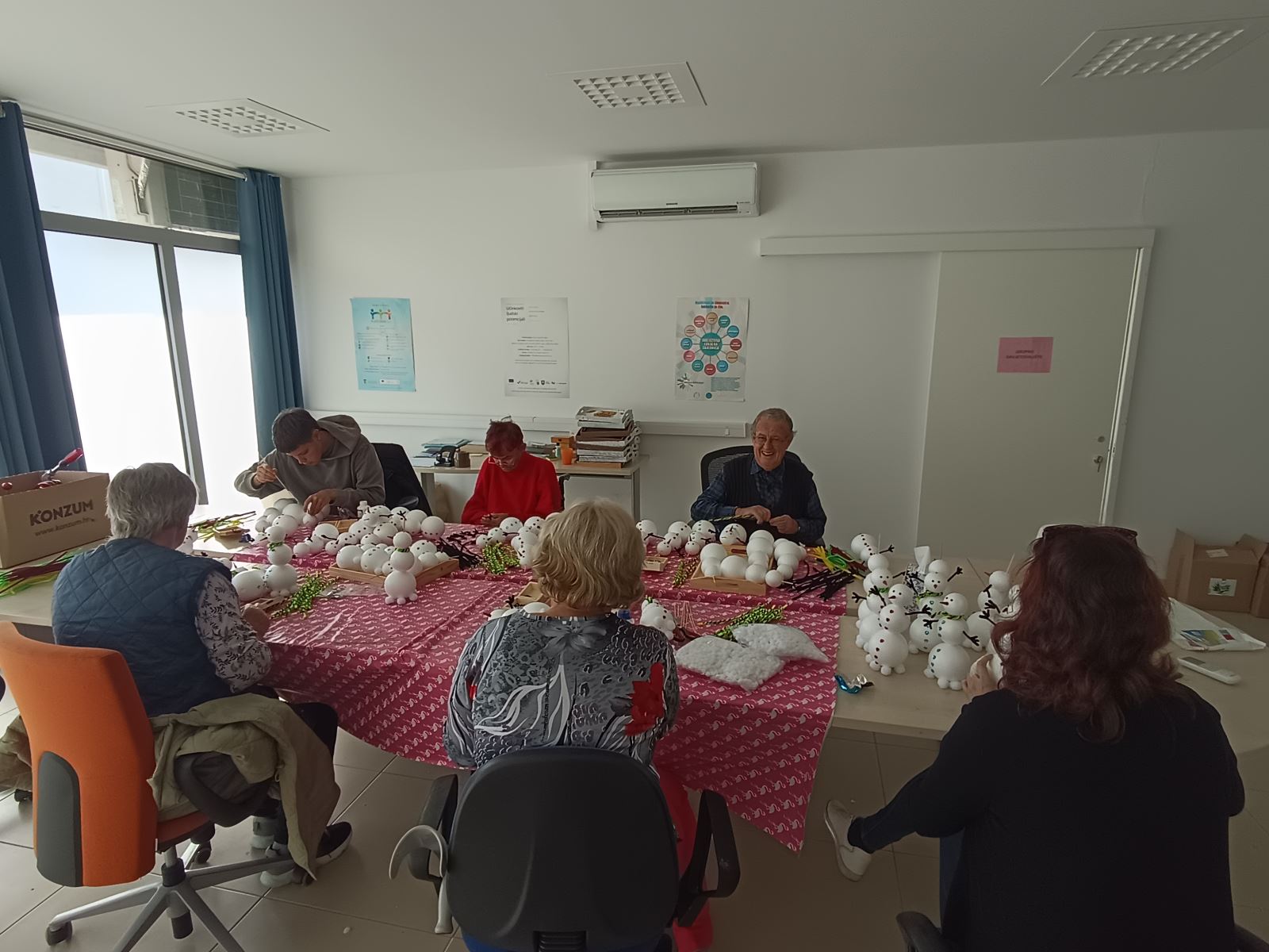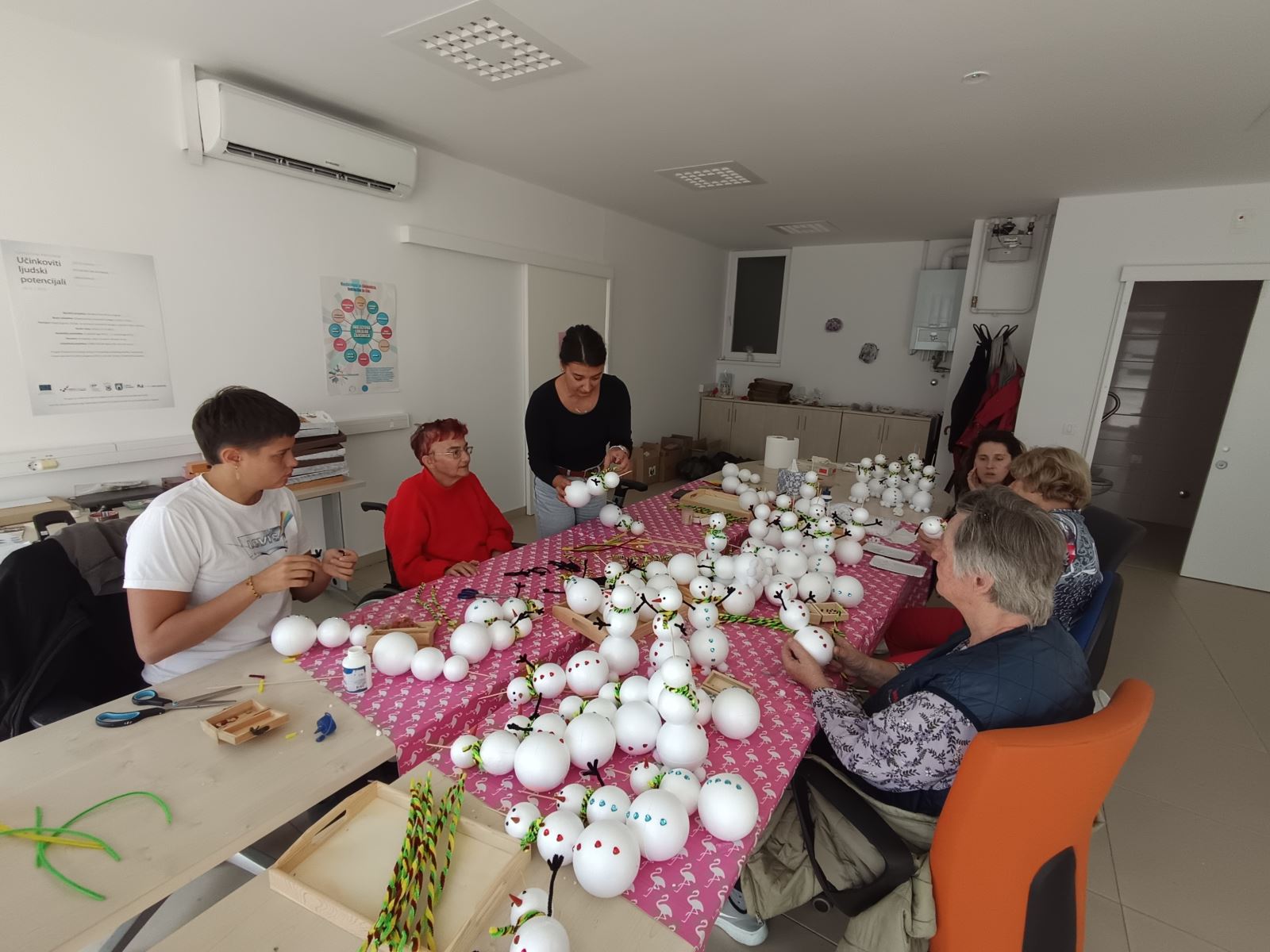 U prostorijama Društva distrofičara Zagreb u Novom Jelkovcu, u četvrtak, 6. studenoga 2025., održana je još jedna u nizu kreativnih radionica u sklopu treće godine trogodišnjeg programa „Neovisno življenje osoba s mišićnom distrofijom“, sufinanciranog od strane Grada Zagreba. Radionica je okupila članove DDZ-a koji su izrazili svoju maštu kroz izrađivanje i uređivanje snjegovića od stiropora. Voditeljica radionice bila je radna terapeutkinja Katarina Kovačić. Ovom radionicom pokrenuli smo pripremu božićnih ukrasa za blagdane koji nam dolaze.