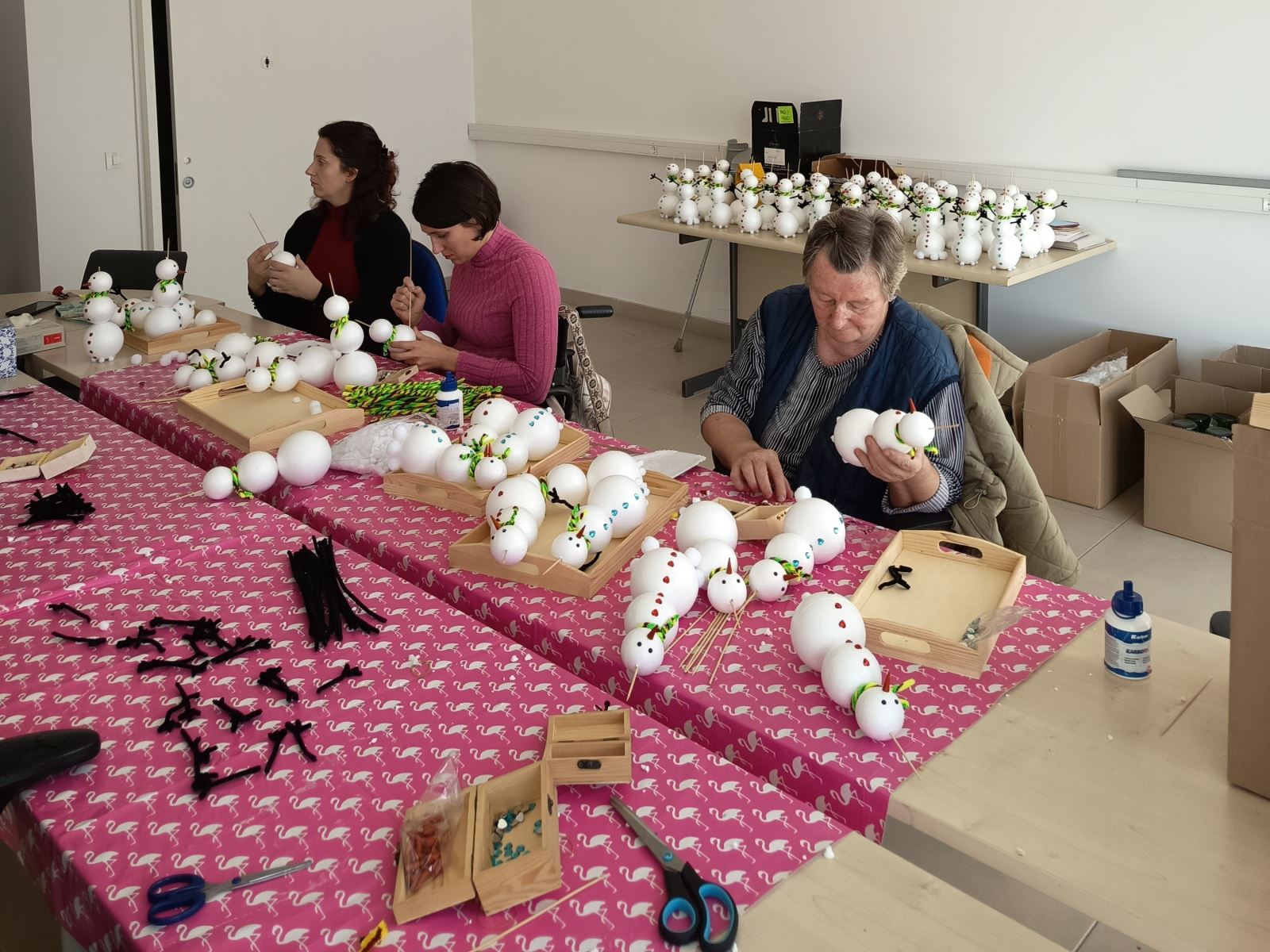 U prostoru Društva distrofičara Zagreb (DDZ) održana je kreativna radionica izrade jedinstvenih snjegovića u duhu nadolazećih božićnih blagdana 14. studenoga 2025. Radionica je protekla u ugodnoj i poticajnoj atmosferi, obilježenoj božićnim raspoloženjem i kreativnim stvaralaštvom prisutnih korisnika. Aktivnosti su bile pažljivo osmišljene kako bi poticale očuvanje i razvoj fizičkih sposobnosti, posebno fine motorike i koordinacije pokreta. Korisnici su kroz oblikovanje materijala, lijepljenje sitnih dekorativnih elemenata te precizne pokrete prilikom sastavljanja svojih snjegovića intenzivno vježbali finu motoriku, što im uvelike koristi u svakodnevnom funkcioniranju. Radionicu su vodile Gabriela Čabraja, fizioterapeutkinja, i Monika Svetina, socijalna radnica. Aktivnost je sufinancirana iz sredstava Grada Zagreba u sklopu treće godine programa „Poticanje neovisnog življenja osoba s mišićnom distrofijom“.