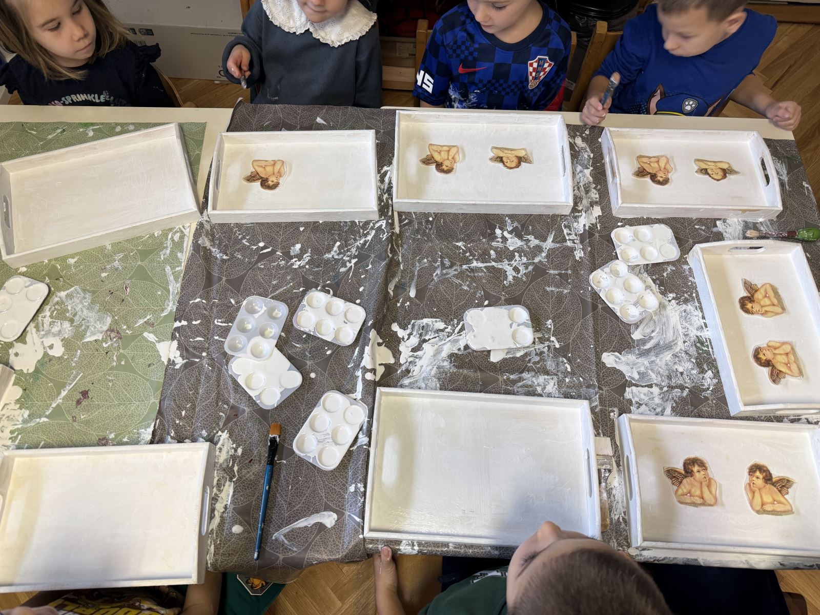 Djeca su kroz razigrano i stvaralačko okruženje ukrašavala drvene tacne božićnim salvetama, koristeći osnovne tehnike decoupage, te odabir motiva, apliciranje ljepila te završno zaglađivanje površine. Aktivnost je bila vrlo dobro prihvaćena; djeca su pokazala visoku razinu interesa, kreativnosti i strpljenja, a svako dijete izradilo je svoj jedinstveni rad.