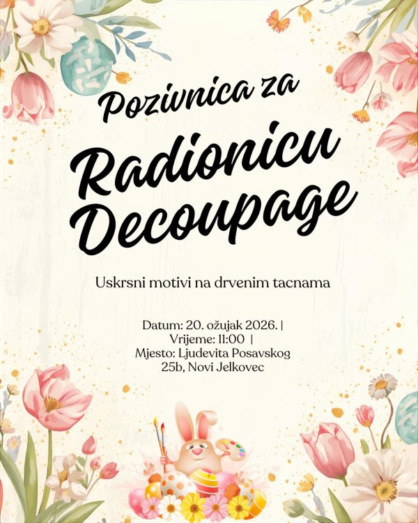 U susret proljeću i Uskrsu pozivamo vas na veselu i opuštajuću kreativnu radionicu decoupage tehnike, gdje ćemo drvene tacne ukrasiti prekrasnim uskrsnim motivima.