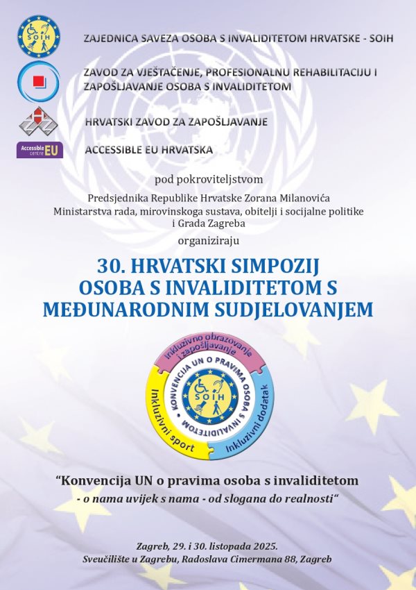 Pozivamo Vas na 30. hrvatski simpozij osoba s invaliditetom s međunarodnim sudjelovanjem koji će se održati 29. i 30. listopada 2025. u zgradi Sveučilišta u Zagrebu, Ul. Radoslava Cimermana 88, Zagreb.