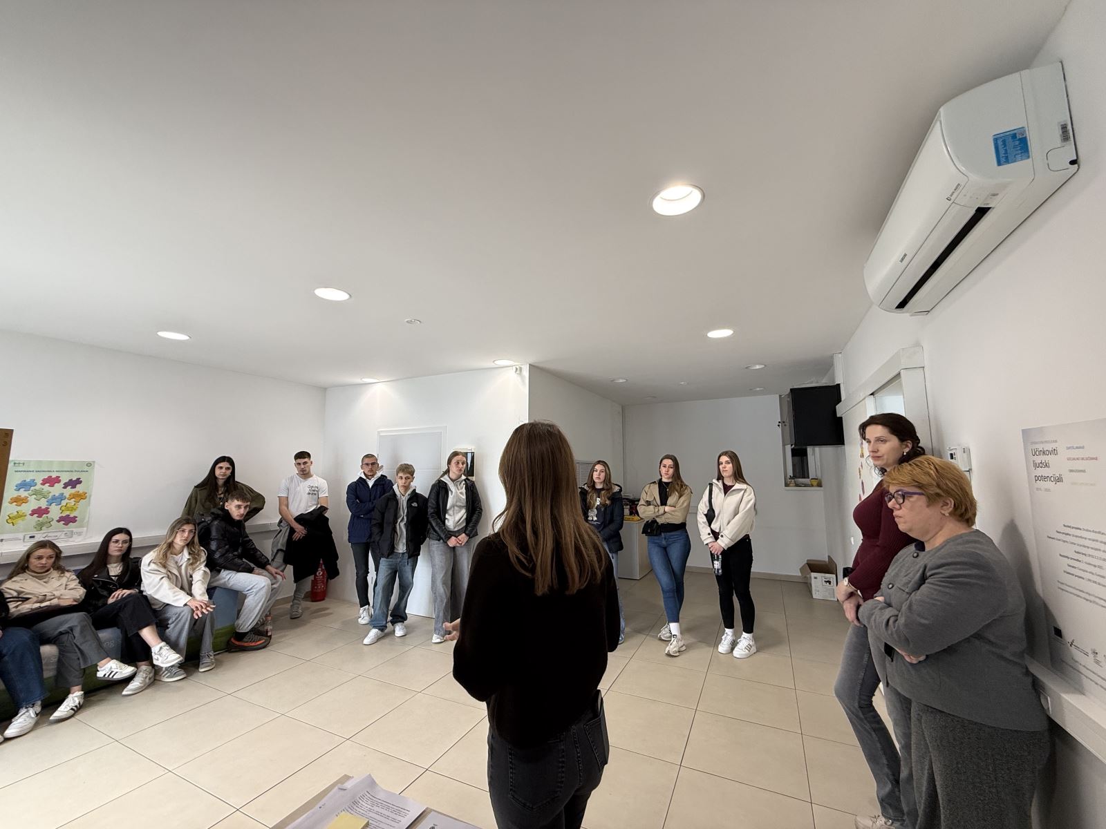 Na samom početku posjeta prisutne je pozdravila Ivana Kučina, koja je učenicima predstavila djelovanje Društva distrofičara Zagreb, njegove ključne programe i aktivnosti usmjerene na unaprjeđenje kvalitete života osoba s mišićnom distrofijom i ostalim neuromuskularnim bolestima te važnost pružanja podrške u zajednici.
