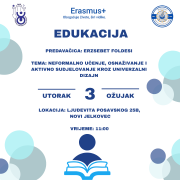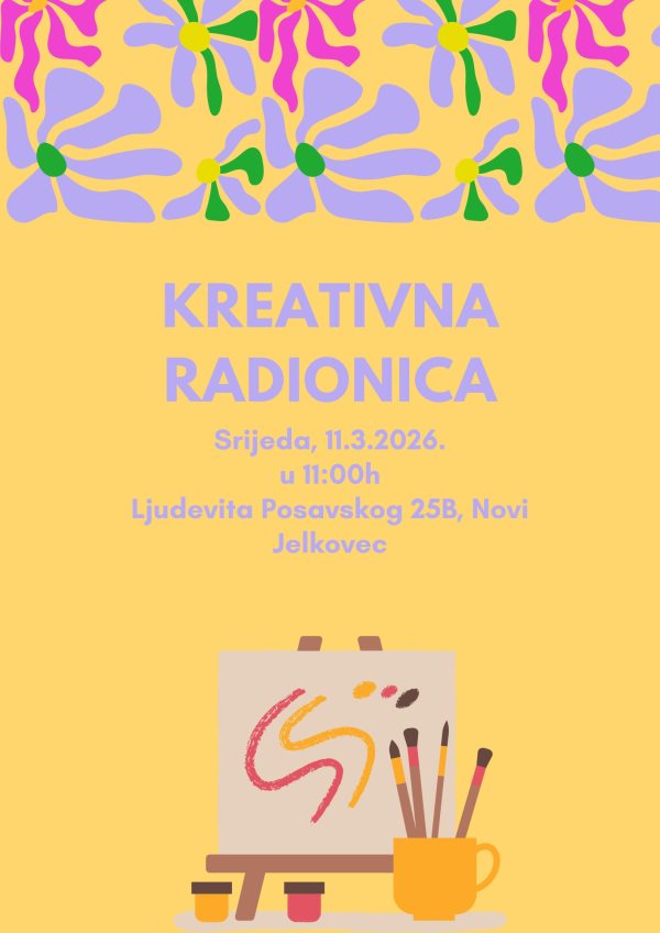 Vijesti 5.3.2026. Pozivamo vas na kreativnu radionicu decoupage tehnikom 11. ožujka 2026. u 11 sati Pročitaj više 26.2.2026. Poziv na Erasmus+ radionicu, 3.3.2026., 11 sati Pročitaj više 25.2.2026. Poziv na kreativnu radionicu povodom Dana žena, četvrtak 5.3.2026. u 11h u Novom Jelkovcu Pročitaj više 25.2.2026. Glazbena radionica s korisnicima DDZ Pročitaj više 24.2.2026. Održan Pub kviz za korisnike u Novom Jelkovcu Pročitaj više