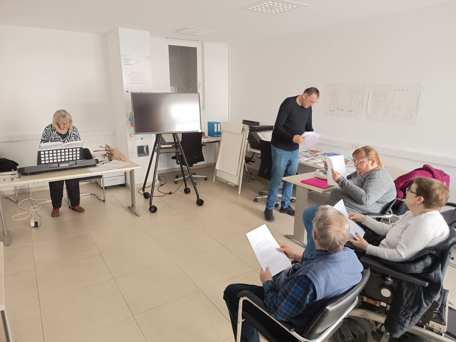 U prostorijama DDZ-a održana je glazbena radionica pod vodstvom profesorice Paule Fabinger Orešković dana 24. ožujka 2026. Radionica je bila usmjerena na poticanje kreativnog glazbenog izražavanja, razvoj glasovnih sposobnosti te stvaranje ugodnog i poticajnog okruženja koje doprinosi međusobnom povezivanju korisnika. Korisnici su slušali ulomke oratorija, kao i duhovne skladbe tematski vezane uz korizmeno razdoblje. Ovaj segment dodatno je obogatio sadržaj radionice, potičući dublji emocionalni i duhovni doživljaj glazbe. Poseban naglasak stavljen je i na zajedničko muziciranje, pri čemu su korisnici pjevali poznate pjesme, čime se poticalo zajedništvo, osjećaj pripadnosti i opuštena atmosfera. Radionica je protekla u toplom i podržavajućem ozračju, uz velik interes i aktivno sudjelovanje svih korisnika. Ova aktivnost provedena je u sklopu Temeljne podrške Nacionalne zaklade za razvoj civilnog društva.