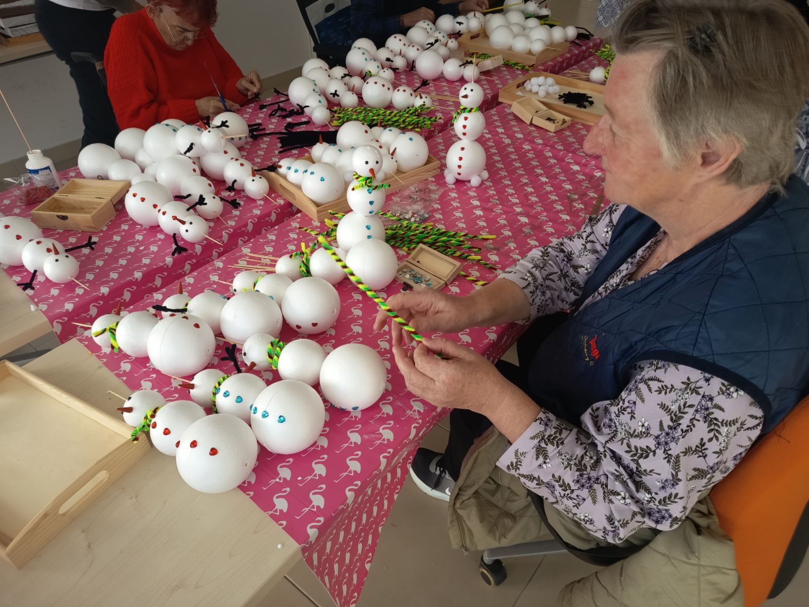U prostorijama Društva distrofičara Zagreb u Novom Jelkovcu, u četvrtak, 6. studenoga 2025., održana je još jedna u nizu kreativnih radionica u sklopu treće godine trogodišnjeg programa „Neovisno življenje osoba s mišićnom distrofijom“, sufinanciranog od strane Grada Zagreba. Radionica je okupila članove DDZ-a koji su izrazili svoju maštu kroz izrađivanje i uređivanje snjegovića od stiropora. Voditeljica radionice bila je radna terapeutkinja Katarina Kovačić. Ovom radionicom pokrenuli smo pripremu božićnih ukrasa za blagdane koji nam dolaze.