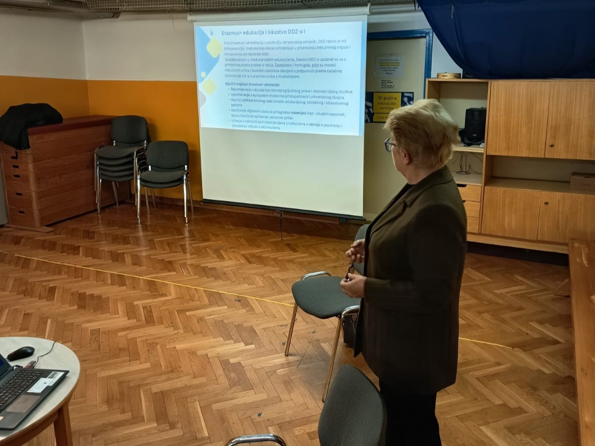 U sklopu edukacije prikazano je iskustvo Erasmus+ akreditacije u sklopu koje je DDZ proveo edukacije zaposlenika u području obrazovanja odraslih, a koja je poslužila kao primjer europske dobre prakse u razvoju inkluzivnog odgoja i obrazovanja od najranije dobi. Sudionicima su predstavljeni modeli inkluzivnih vrtića i školskih zajednica iz Italije, razvijeni u skladu s načelima Konvencije UN-a o pravima osoba s invaliditetom. Kroz ovaj dio predavanja istaknuta je važnost međunarodne suradnje i cjeloživotnog učenja stručnog osoblja, kao i praktične primjene znanja stečenih kroz Erasmus+ mobilnosti u svakodnevnom radu s djecom.