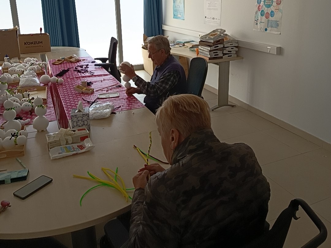 U prostoru Društva distrofičara Zagreb (DDZ) održana je kreativna radionica izrade jedinstvenih snjegovića u duhu nadolazećih božićnih blagdana 14. studenoga 2025. Radionica je protekla u ugodnoj i poticajnoj atmosferi, obilježenoj božićnim raspoloženjem i kreativnim stvaralaštvom prisutnih korisnika. Aktivnosti su bile pažljivo osmišljene kako bi poticale očuvanje i razvoj fizičkih sposobnosti, posebno fine motorike i koordinacije pokreta. Korisnici su kroz oblikovanje materijala, lijepljenje sitnih dekorativnih elemenata te precizne pokrete prilikom sastavljanja svojih snjegovića intenzivno vježbali finu motoriku, što im uvelike koristi u svakodnevnom funkcioniranju. Radionicu su vodile Gabriela Čabraja, fizioterapeutkinja, i Monika Svetina, socijalna radnica. Aktivnost je sufinancirana iz sredstava Grada Zagreba u sklopu treće godine programa „Poticanje neovisnog življenja osoba s mišićnom distrofijom“.