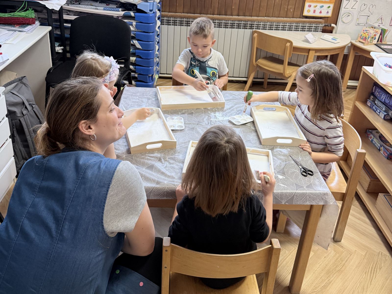 Djeca su kroz razigrano i stvaralačko okruženje ukrašavala drvene tacne božićnim salvetama, koristeći osnovne tehnike decoupage, te odabir motiva, apliciranje ljepila te završno zaglađivanje površine. Aktivnost je bila vrlo dobro prihvaćena; djeca su pokazala visoku razinu interesa, kreativnosti i strpljenja, a svako dijete izradilo je svoj jedinstveni rad.
