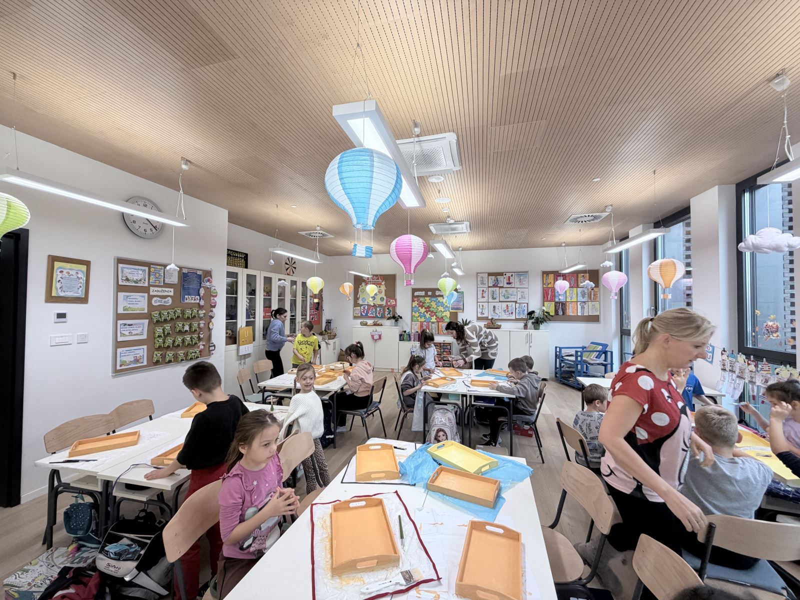 Radionica je počela kratkim uvodom u decoupage tehniku, tijekom kojeg su učenici upoznati s potrebnim materijalima i koracima izrade. Nakon demonstracije, učenici su samostalno pristupili ukrašavanju tacni, birajući motive, slažući kompozicije i pažljivo nanoseći ljepilo i zaštitne slojeve. Kroz aktivnost su dodatno razvijali koordinaciju pokreta i socijalne vještine. Voditeljice su pružale individualnu pomoć te poticale djecu na maštovitost i samostalnost.
